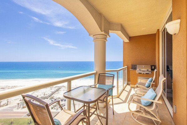Welcome to Portofino Tower 5-1408! This condo has all new furnishings and features stunning gulf front views! Easy access to the beach, tower pool and hot tub on the ground level.