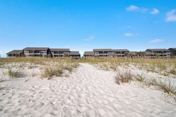 It was handy that the condo was on ground level…no stairs to climb or waiting for elevators. Also, we had parking very close to the front of the condo. The pool on the bay side was easy to get to. There’s also a pool over on the beach side. It’s an easy walk over to the beach access. The grounds are nicely landscaped. The condo was spacious for a 2 bedroom unit. We would stay here again .