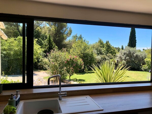 It is a 20 minute walk into the centre of Pernes-les-fontaines along a lovely canal. Pernes is a quiet town but with everything you need, boulangeries, restaurants, a lovely cafe by the church and a fabulous market on a Saturday.