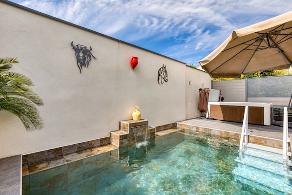 Benvenuti nella nostra villa a Pérols! Con piscina privata, jacuzzi, Wi-Fi e aria condizionata, è il luogo ideale per una vacanza in famiglia o tra amici.
