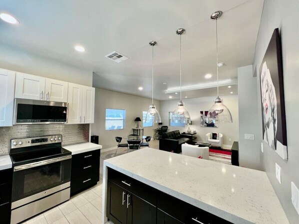 The house was perfect! We loved the decor and everything was in great condition. When we travel we do our own cooking rather than eating out, and the kitchen had everything we needed. The laundry room was also stocked so we could travel back home with clean laundry, rather than a suitcase full of dirty clothes. The unit is newer, situated in a cute little historic neighborhood. It was located near everything we had planned to do while visiting. The property managers were responsive and extremely nice. They went the extra mile to make sure we were comfortable and had everything we needed. We will definitely book this rental next time we visit!