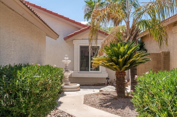 This is a reasonably priced home in a nice neighborhood. It has a pool with patio table, chairs and umbrella, comfortable beds, is close to many restaurants and 20 min from the airport! The owners were very responsive to questions. The big TV is a nice feature. It was fine for our needs.