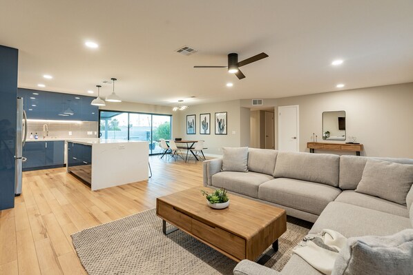 Enjoy a stylish experience at this centrally-located house in Phoenix. This remodeled home sits in a quiet neighborhood that is a short distance from the PHX Sky Harbor Airport, some of the state's best hikes, and well known golf courses. This three bedroom, two bath boasts all the upgrades you can think of with a stunning kitchen, spacious living area, and three bedrooms with comfy beds! Experience this centrally-located place.