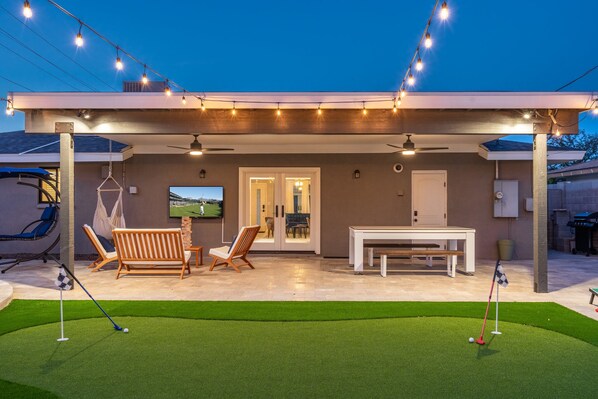⛳ Putting green, ping-pong, billiards table, corn hole, giant Jenga