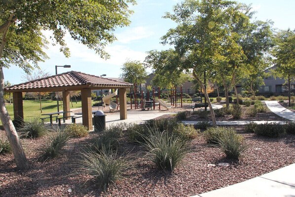 It is well equipped for kids, but there are gaps. For example, there is a surprisingly large number of toys, but all the balls were flat (perhaps there is an inflator; we didn't need to look). There is a lot of the head-cracking tile seemingly inescapable in Phoenix (including at the bottom of the stairs), though less than other VRBOs we've stayed in. There is also a wine glass rack in the kitchen at the perfect height for toddler mischief.