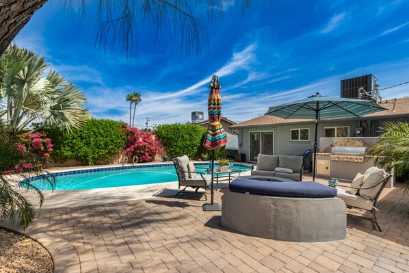 We wanted a place close to Old Town with both a pool & fire pit. This home was perfect! Would definitely stay again! We could walk to town or UBER for about $10. The canal was very close so we could do our morning walks on a paved trail that was away from the traffic. Great neighborhood & location.