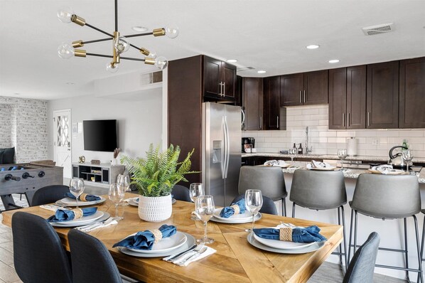 We had a group of 7 girls stay at the property for a long weekend and it was great. We cooked in the kitchen every day and it was specious enough for everyone to be in/around there at once. The backyard has a bunch of amenities including the pool, fire table, cot hole, and grill. We traveled from the Midwest in February so it was wonderful to enjoy the outdoor space. Everything was clean and tidy and the check in/check out process was one of the easiest I’ve ever experienced. Great location - close to everywhere we wanted to go!