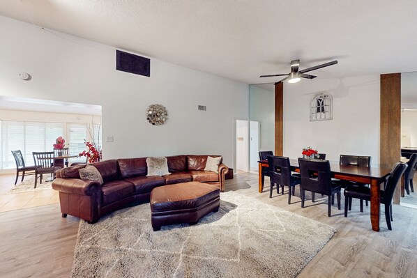 Sunlit & spacious desert villa with patio, games, & fire pit - near golf & parks