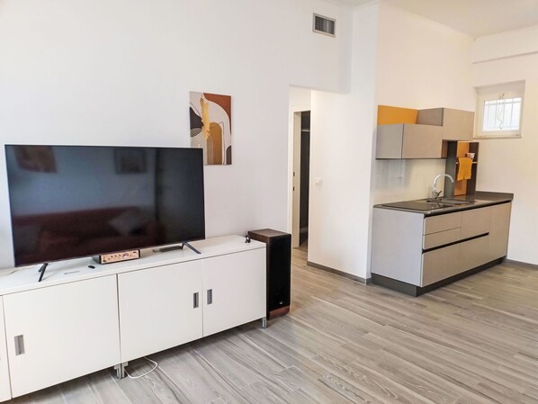 "Mezzano" è una casa di 3 locali completamente ristrutturata di 80 m2, situata al 1° piano e completata nel 2025 con arredamento confortevole e moderno in tutto l'alloggio. La proprietà vacanze dispone di un ampio soggiorno/sala da pranzo dotato di televisore per il vostro intrattenimento. L'alloggio comprende una camera matrimoniale e una piccola camera contenente un letto e un letto estraibile, offrendo sistemazioni per dormire flessibili per il vostro soggiorno vacanza. Troverete un angolo cottura ben attrezzato con forno, lavastoviglie, 4 piastre a induzione, bollitore e microonde per preparare i pasti durante il vostro soggiorno. La proprietà offre un bagno con doccia, bidet e WC. Una terrazza coperta con mobili da terrazza amplia il vostro spazio abitativo e offre splendide viste lontane sul mare.