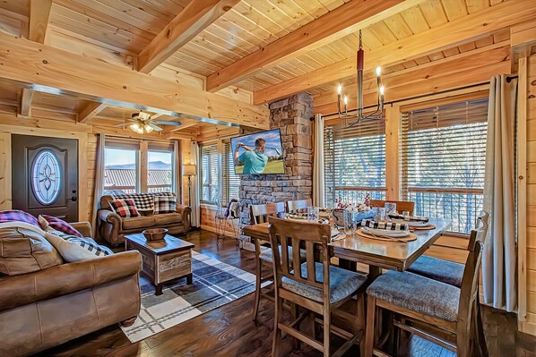 We had a great time! There are so many great things about this cabin! It was the perfect size for everyone to be together yet still have their own space. The kitchen was superbly stocked with cooking pans, dishes, etc. The bedrooms were a good size and the beds were comfortable. There were extra pillows, blankets, and throw blankets. This cabin really had all the little things that make you more comfortable when you're away from home. The location is fantastic and makes it easy to get to and from all the attractions. Checkin was great (the cabin was ready early) and our host, JT, was friendly, made sure that we were comfortable, and always responded quickly.
