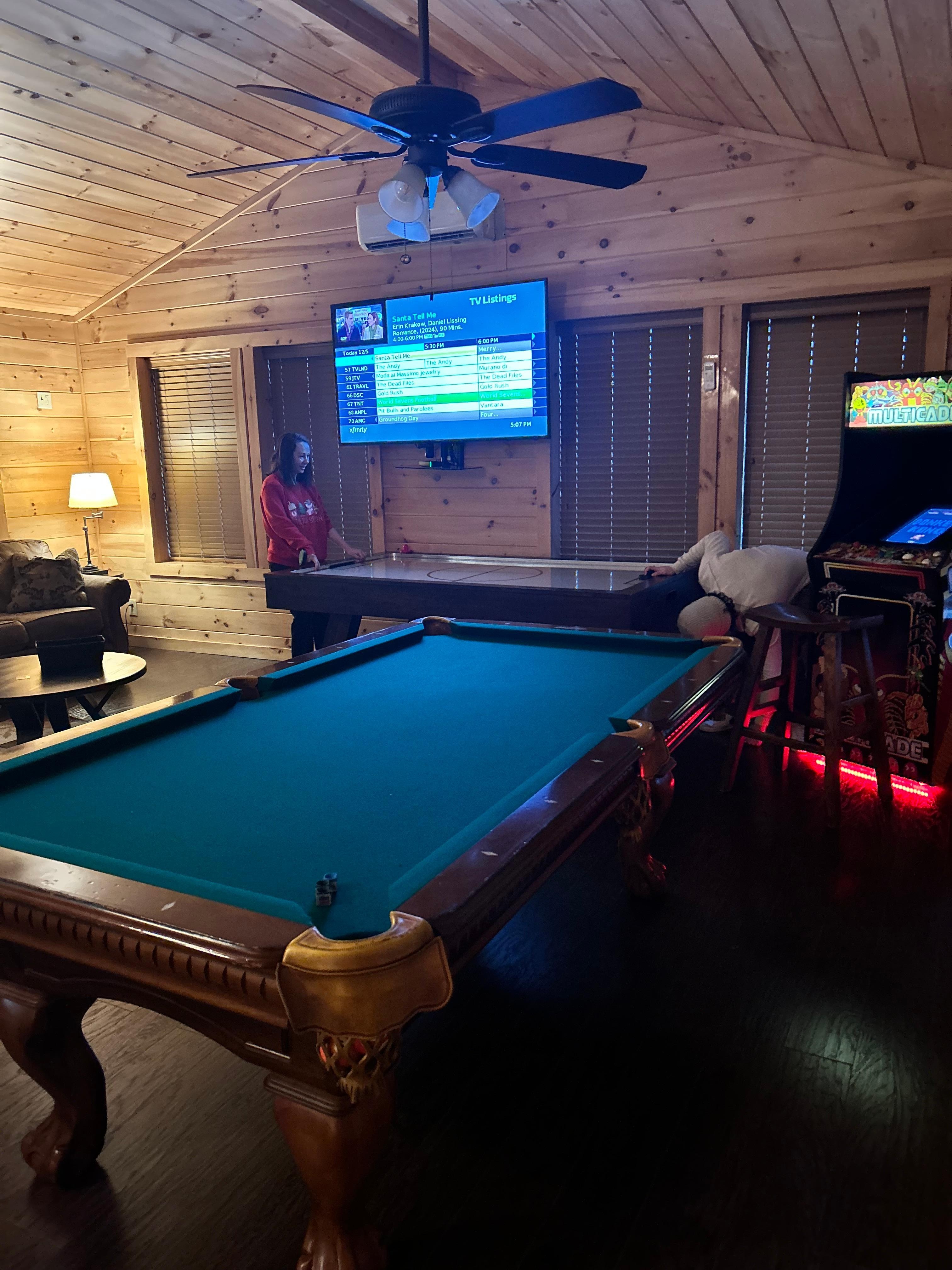 We absolutely loved this property! We checked in and found everything we needed for our stay. The awesome game room had air hockey, arcade games, board games and a nice pool table to entertain the whole family. Let me just say LOCATION! So close to town but also tucked up in the hills with a beautiful view of the mountains. The neighborhood was very safe and had other beautiful cabins. The hot tub was perfect after a long day of walking. We will for sure stay here the next time we go to Pigeon Forge.