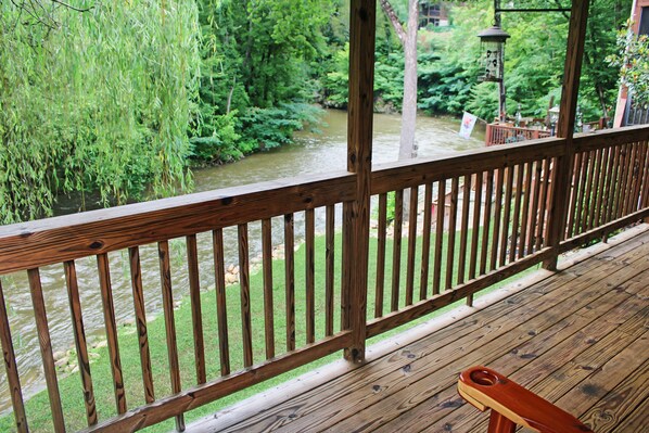 River Pointe Cottage 554 è un cottage sul fiume 3 camere da letto, 3 bagni situato a circa 1 miglio dal centro di Pigeon Forge. Questo bellissimo cottage dispone di tutti i comfort che desideri, un'ottima posizione e una splendida vista sul fiume direttamente sul tuo ponte posteriore. River Pointe 554 dispone di un caminetto a gas, 4 TV (una nel soggiorno, una in ogni camera da letto) con cavo e 2 lettori DVD (uno nel soggiorno, uno nella camera da letto al piano superiore). C'è una cucina di dimensioni complete, completamente attrezzata con lavastoviglie, forno a microonde e macchina per il caffè, lavatrice / asciugatrice full size e griglia di cottura a carbone. Tutte e tre le camere da letto hanno letti king size C'è una vasca idromassaggio interna per 2 persone in un bagno e cabina doccia con maniglioni nell'altro bagno - inoltre, questa unità è dotata di porte larghe 3 piedi in tutto, per facilità di accesso. Henderson's Riverside # 2, River Pointe 554 ospiterà fino a 6 persone. VIETATO FUMARE, PER FAVORE.