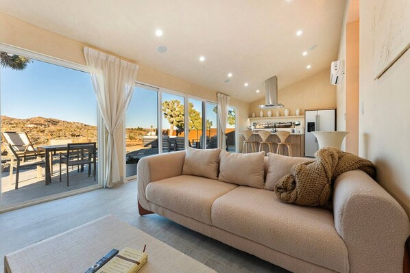Escape to our serene retreat in the heart of Pioneertown, where nature`s beauty surrounds you. Enjoy sweeping views of the stunning desert landscape, perfect for hiking adventures or watching breathtaking sunrises and sunsets.