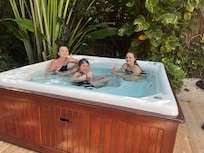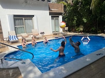 The beautiful villa had many spacious bedrooms and bathrooms which was perfect for our families. The bedrooms featured many varieties of beds allowing many possible combinations. The kitchen, dining room, and eating area provided lots of room for meals and all of the appliances worked very well. There was also lots of glassware and dishes. The house, appliances, pool area and yard were very clean and were serviced several times while we were there. For the kids, the pool, hot tub and wilderness backyard were most important. The pool was used every day for many hours. The house is located very centrally in Playacar and the beach, restaurants, and shopping are all within easy walking distance.