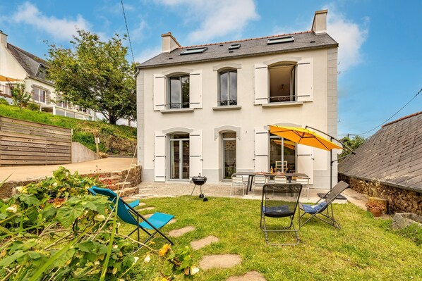 Cocoonr/Book&Pay offers this charming 95 m² house for rent in Plougastel-Daoulas, which can accommodate up to 7 people. It has a lovely 30 m² living room, a fitted kitchen, three bedrooms, a bathroom and a 120 m² garden. Wi-Fi (fiber optics), bed linen and towels included, we're waiting for you!
