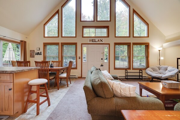 Enjoy easy access to outdoor recreation and Arrowhead Lake at this beautiful 3-bedroom, 2-bathroom Pocono vacation chalet. This mountain chalet boasts 1400 square feet of well-appointed living space, with a furnished deck and propane BBQ grill. Guests are invited to settle in for a retreat of a lifetime! (Community fees are extra and mandatory, details below)