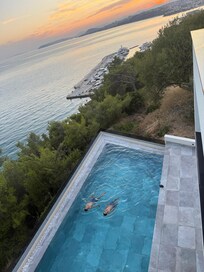 We had a great time at the Villa. It has a perfect location with easy access to the city and 5 min walk down the stairs to the water, beach club and marina. We had our young adults with us, and they appreciated that they could go party in town with a short ride with uber. Also, we booked a boat through our villa host and it could pick us up at the Marina 5 min away. Perfect access to the sea. The villa has a great layout with a master bedroom on top with terrasse and living areas. Perfect if the adults want to retreat from the rest of the family. Middle floor great for kids and teenagers. The basement has a great gym with much equipment. The kitchen and pool area is amazing and perfect setting for the family to gather. Fully equipped with BBQ and Music box to have a fun evening. The host Mateo was super friendly and helpful with everything from getting us groceries at arrival to fixing us up with a boat. He even negotiated a better boat deal on our behalf. Finally the host family also runs a great local Restaurant Leonis. We had dinner there twice and the food was amazing. On top excellent attentive service. Everyone made us fell at home. All in all this – our first visit to Croatia – was made so perfect. Can greatly recommend the Villa and its host. Only issue if we are to point out anything, it is that the traffic can get stuck sometime going in/out of town. But that is a general problem for the area we think. Just make sure you allow enough time when planning.