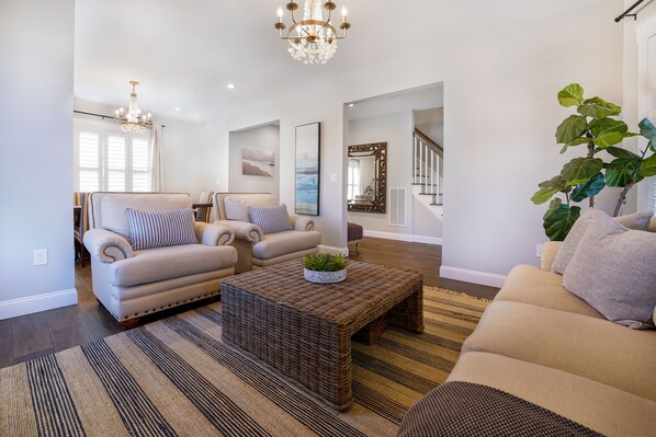 The house is beautiful - plenty of room and everything seems brand new. You can walk to the stores, town, the beach and boardwalk so we rarely used the car. The kitchen is great and the back yard has plenty of seating along with a great fire pit. It was a great stay and I highly recommend this home.