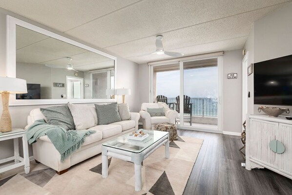 Love this condo. We had grandchildren with us this time and the beach toys and chairs were wonderful. They loved their bedroom with the bunks. I especially loved the addition of the charging stations in the master. We have stayed at this property several times and this unit is my absolute favorite.