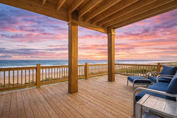 The expansive deck is a showstopper, offering unobstructed beach views that invite you to dine al fresco, lounge under the sun, or sip your morning coffee as the waves roll in. The fully fenced-in ground level features a private hot tub, creating a secluded space to unwind after a day at the beach. Just a short two-minute walk down a charming path, you'll find easy beach access, making every sunrise stroll and sunset gathering effortlessly accessible. Whether you're basking in the sun, enjoying oceanfront dining, or stargazing from the hot tub, this coastal retreat delivers an unforgettable beachside experience.