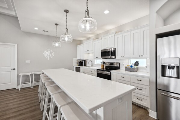 Beautiful home with a fully stocked kitchen. There were enough of everything for 20 ppl. Great spot for fir family vacation.