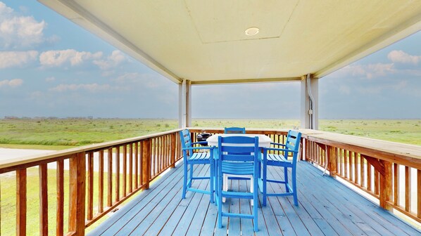 This is a charming little beach house on the West end of Bolivar. If you are looking for a budget property, this is probably the best you can get on peninsula. I love a water view rental and for being second row from the shoreline, the Gulf views were fantastic! It's a small place, but it has pretty much everything you need ...a full kitchen, a decent sized living room and bedroom, and a washer and dryer. Everything worked well and the folks at Swedes are super nice, responsive, and accommodating. It's perfect for a solo traveler. I would definitely rent there again.
