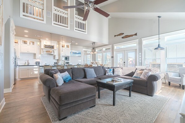 Our stay at The Queen was wonderful. We are from the upper midwest with family in the Houston area and thought this would be a great location to host our family Christmas get together, and it was. Our group consisted of 3 families that included 4 teenagers. The house was perfect for this with three separate bedrooms and the bunk room with 4 bunks, giving everyone their own space. The bunks are even separated in the middle so the teens got a little privacy too. The master suite was amazing. A huge walk in shower and closet and all the beds were so comfortable. With the cooler weather (highs in the mid 60s), we did spend more time in the house, just hanging with family. The open living room/dining room/kitchen was perfect for this and our group of 10. Some would watch a movie on the big screen, others would play games at the table while someone was cooking and everyone was still in the same room. The only thing that could be improved is having more and better pots and pans. It was tough cooking for our group with what was there. The deck was great for sitting on in the mornings watching the sun rise or just hanging out in the evening. The deck furniture was very comfortable and there was plenty of seating for everyone. With the open lot in front of the house, the view is great. The beach is just a short walk away (less than a block) but the mosquitos were a little pesky on the walk there due to the taller grass near the sand dunes so pack some bug spray.