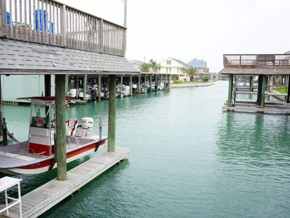 Waterfront Home. Nicely kept home with an inviting deck and great views of the Dolphin Point canals. TWO Boat Stalls with Lifts and One Wet tie-up for three boats total, makes this rental one of our most popular get-a-ways for the fishing crew, family or corporate stays. Just off the ICW and close to Fisherman's Cut leading to Bar Room Bay and the Little Jetties leading to Matagorda Bay, this is a convenient location for your saltwater fun. NOTE this unit DOES NOT have WiFi.
