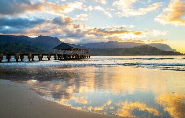 What a wonderful place for a seven-night stay to completely relax and unwind. Hanalei Bay Resort and this condo in particular are spectacular. It's even nicer than the photos. We liked being in the end unit, very quiet with beautiful views. Easy access to the pool and the on-demand private shuttle (extended golf cart w/friendly/helpful drivers!) will bring you and all of your stuff down to the picturesque beach. While there were only two of us, there is plenty of space for a family of four. We appreciated all of the extras: beach chairs, mats, umbrella, and fully equipped kitchen with some dry goods and paper products. Full-size washer and dryer in the kitchen that is very new. Just an easy, lovely place to stay. The owner is easily accessible to answer any questions and has definitely thought of everything when furnishing this vacation home. This is not a stripped out rental with bare bones furnishings but a place that any owner would enjoy visiting him/herself. Thank you for a wonderful stay, Jeff, and for making us feel so welcome. We look forward to returning to your lovely slice of paradise soon! Also, be sure to go to Happy Talk for dinner, JoJo's for shave ice, and the Havaiki Tribal Arts store to support local artisans. We also highly recommend NaPali Catamaran for an incredible morning snorkeling trip and fascinating tour of the area. We can't wait to come back!