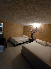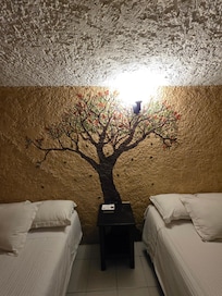 Estando en la habitación existe un armario con cobijas extras, una mesa con una silla, una mesa de descanso entre las camas y una pantalla postrada en la pared, un lavamanos con dos jabones y un botecito de shampoo. En el baño papel, toallas y agua caliente al cabo de unos pocos minutos.