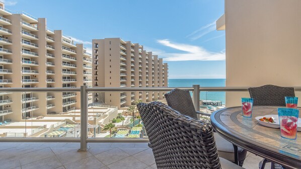 Spacious and luxurious, this two bedroom condominium brings together everything that makes a comfortable getaway destination. Highlights include the spacious balcony, well appointed kitchen, intimate bath in the main bathroom, and leather sofas in the living room.