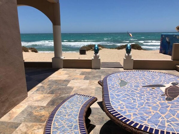 The Studio at Hacienda De Sol y Luna is beachfront and located in the beautiful Playa Encanto beach community. Playa Encanto is arguably one of the best beaches in Puerto Penasco! Enjoy fun in the sun in the outdoor courtyard with a bbq, corn hole, beach chairs and umbrellas for guest use. Inside the studio there is a private bathroom, kitchen, living room, 1 queen size bed and 1 full-size bed. Playa Encanto is a quiet, family friendly, gated community.