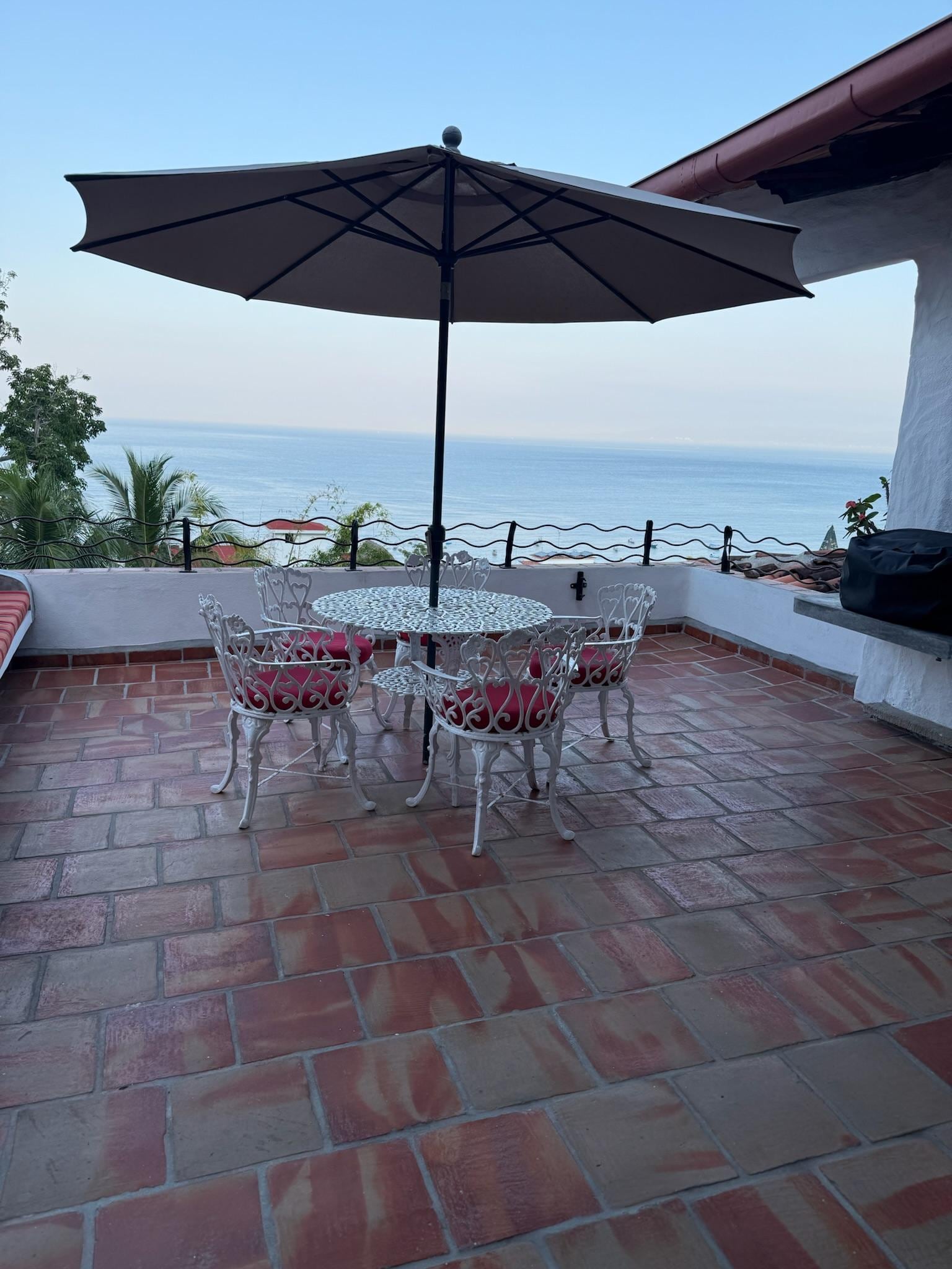 Barbecue a gas sulla terrazza con vista sull'oceano
