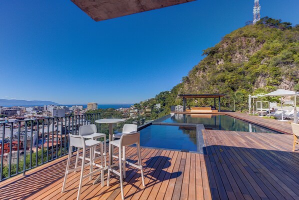 Rooftop pool overlook the ocean/bay, river cuale, and Sierra Madre mountains, and include:
