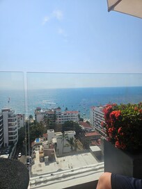 The apartment comes fully stocked with dishes, a washing machine, dishwasher, and twice filtered water (from the fridge) that's safe to drink. The cleanliness isn't to Canadian standards, but for being Mexico, it was good. The housekeeping staff could definitely do better, especially on door handles and cabinet pulls. The air conditioning also worked very well. Ladies, bring your mirror!! This place did not have a mirror for doing makeup and because of the lighting and the bathroom counter being so deep, I had to go out and buy a mirror so I could somewhat see what I was doing. They also did not have a full length mirror, so that's another consideration. We only checked out the rooftop once and it seemed lovely. Beautiful views, but the music was a little loud for our liking. It was also close to many restaurants and the beach.