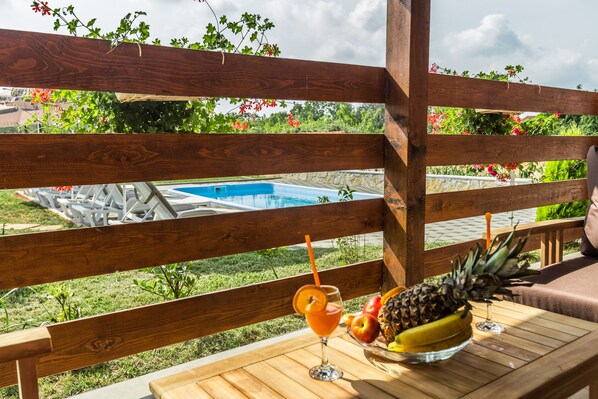 Das Haus, Grundstück und der Pool sind wie beschrieben – sauber, schön und gemütlich. Wir haben uns dort wohlgefühlt. Die Lage ist praktisch: Mit dem Auto erreicht man in ca. 10 Minuten die Altstadt, Geschäfte und Strände. In der Nähe (ca. 3 Minuten zu Fuß) gibt es ein sehr gemütliches kleines Restaurant, wo man auch Essen zum Mitnehmen bestellen kann – hat uns gut gefallen. Ein kleiner Supermarkt ist ebenfalls fußläufig in ca. 10 Minuten erreichbar. Es gibt einen Strand in der Nähe, an dem Hunde auf dem gesamten Strandabschnitt erlaubt sind. Während unseres Aufenthalts gab es dort kaum Quallen und überhaupt keine Seeigel – perfekt zum Schwimmen.Zu beachten ist, dass das Haus direkt an einer stark befahrenen Straße ohne Gehweg liegt. Außerdem gibt es hausinterne Regeln für den Pool, die eher an ein öffentliches Schwimmbad erinnern (z. B. keine Hunde im Wasser, keine Ballspiele), obwohl es sich um einen privaten Pool handelt. Mit unserem wasserliebenden Labrador war das etwas störend, da wir diese Einschränkung vorher nicht wussten – sie war in der Unterkunftsbeschreibung nicht angegeben.Die Besitzer kommen ca. alle zwei Tage zu unterschiedlichen Zeiten vorbei, um nach dem Pool zu sehen oder frische Bettwäsche und Handtücher zu bringen. Insgesamt aber ein schöner Aufenthalt mit guter Ausstattung und praktischer Lage.