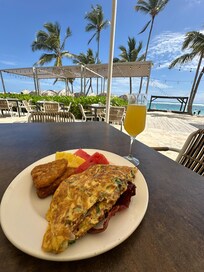 Adesso quello male: Check-in molto lento con nessuna informazione sul Hotel. Dove si trovano i ristoranti e i Buffet li dovevi cercare te. Abbiamo fatto cena e colazione al Buffet del Lobby. Quando toccava per il pranzo uno ci ha detto che per il pranzo si deve andare al Buffet della spiaggia. Non lo abbiamo saputo. Il personale nel Buffet molto arroganti e si dimenticano se ordini bibite. Finisci a mangiare e ancora non ti portano lacqua. Una volta ho persino dovuto andare al bar fuori dal Buffet per prendere lacqua e portarla dentro.