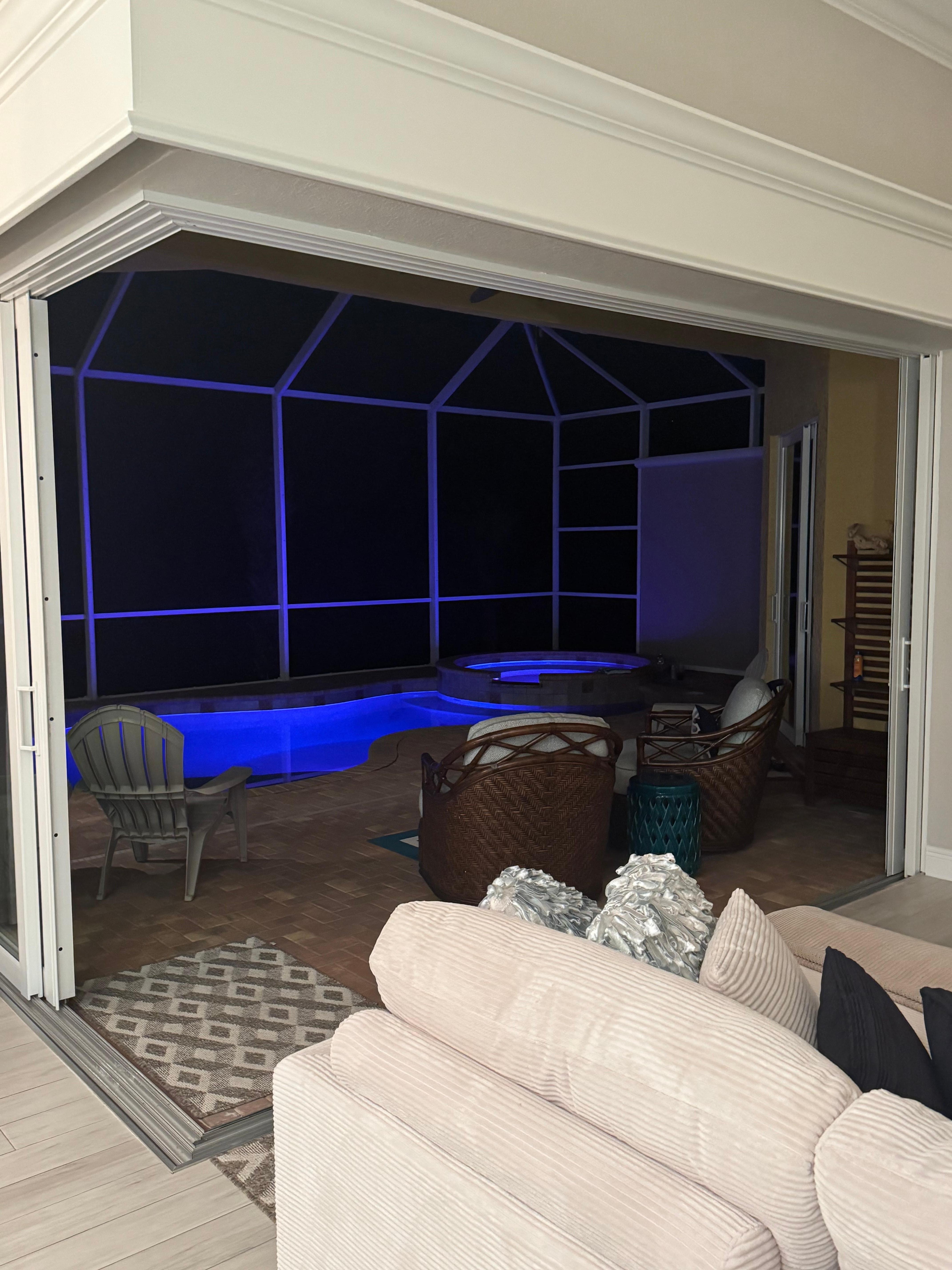 * Sparkling saltwater pool & spa overlooking canal and preserve beyond. Lanai also features remote-controlled privacy screens