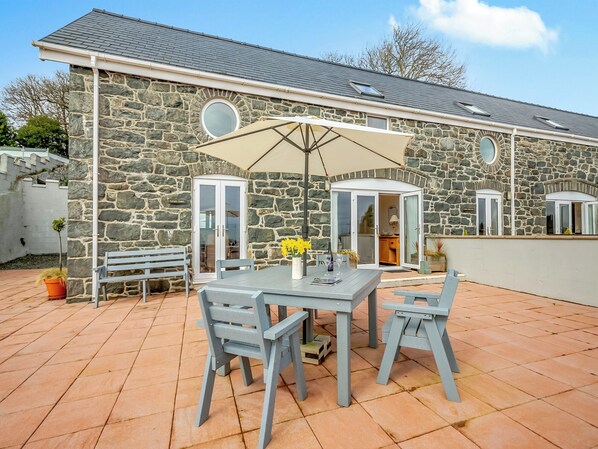 Shower Room: Cubicle Shower, Toilet. Electric central heating, electricity, bed linen, towels and Wi-Fi included. Highchair. Welcome pack. Enclosed front garden with sitting-out area and garden furniture. 1 dog welcome, to be kept on a lead at all times (sheep country). Bike store. Electric car charging point. Private parking for 2 cars. No smoking.. Nestled in the picturesque Welsh countryside just a 5-minute drive from the charming town of Pwllheli, sits this delightful cottage offering a perfect retreat for up to four guests. Surrounded by rolling hills and boasting panoramic views over the shimmering waters of Cardigan Bay, this welcoming abode promises a tranquil escape from the hustle and bustle of everyday life.