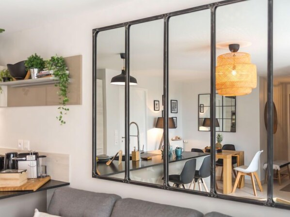 "Les Terrasses de la Plage", apt. di 3 locali 61 m2, al pianterreno. Arredamento molto moderno: soggiorno/sala da pranzo con TV (schermo piatto), tapparelle elettriche. Uscita verso il patio. 1 camera con 1 x 2 letti a castello (90 cm, lunghezza 190 cm). 1 camera con 1 letto doppio (1 x 140 cm, lunghezza 190 cm), bagno. Uscita sulla terrazza. Cucina aperta (forno, lavastoviglie, 3 piastre ad induzione, congelatore, macchina da caffè elettrica, microonde combinato). Doccia, WC separato. Riscaldamento elettrico. Terrazza 12 m2, giardino 35 m2. Mobili da terrazza. A disposizione: lavatrice, asciugatrice, ferro da stiro, lettino per bimbi, asciugacapelli. Internet (wifi). Garage (1 Auto). Prego notare: allarme antifumo. 56186 000572 P5