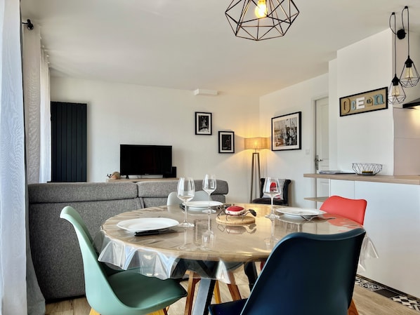 Questo confortevole appartamento duplex di 62m2 situato al primo piano di un piccolo condominio di 3 appartamenti (nessun vicino sopra), offre 1 camera da letto al piano terra con il suo bagno e 1 camera da letto con il suo bagno. bagno e lavanderia al piano.