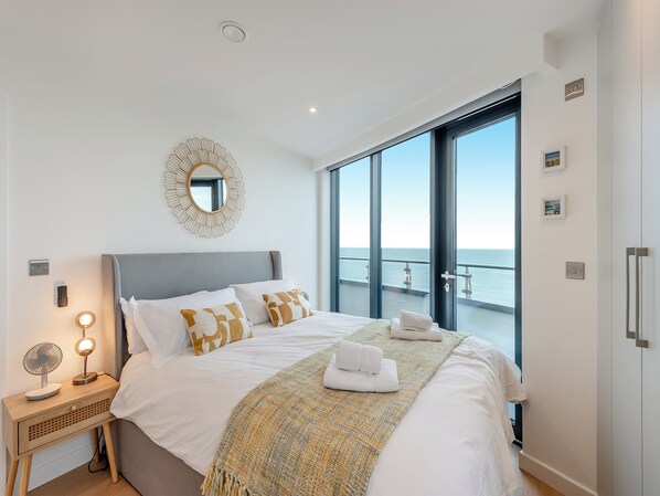 A very modern, comfortable apartment with the most fantastic views. It was spotlessly clean and very well equipped. Literally right on the beach and great for walking the dog.