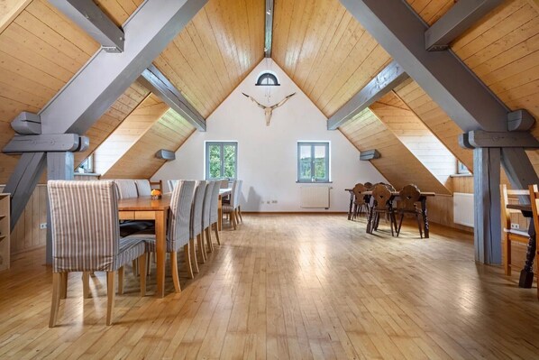 Sul terreno trovate ampi parcheggi, adatti anche a veicoli grandi come camion, furgoni o auto con rimorchio. Piazzole per camper con allaccio elettrico sono disponibili su richiesta. Gli animali domestici sono ammessi. A Capodanno è severamente vietato l’uso di fuochi d’artificio. Non sono consentiti eventi. Il self check-in è possibile previo accordo con l’host. La proprietà è dotata di telecamere di sicurezza e registratori audio. Vietato fumare negli interni. È utilizzata illuminazione a risparmio energetico e parte dell’elettricità proviene da pannelli solari. Il Ravensburger Spieleland dista pochi minuti in auto.