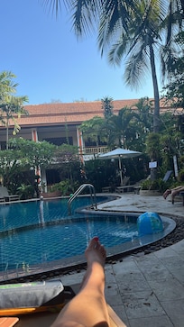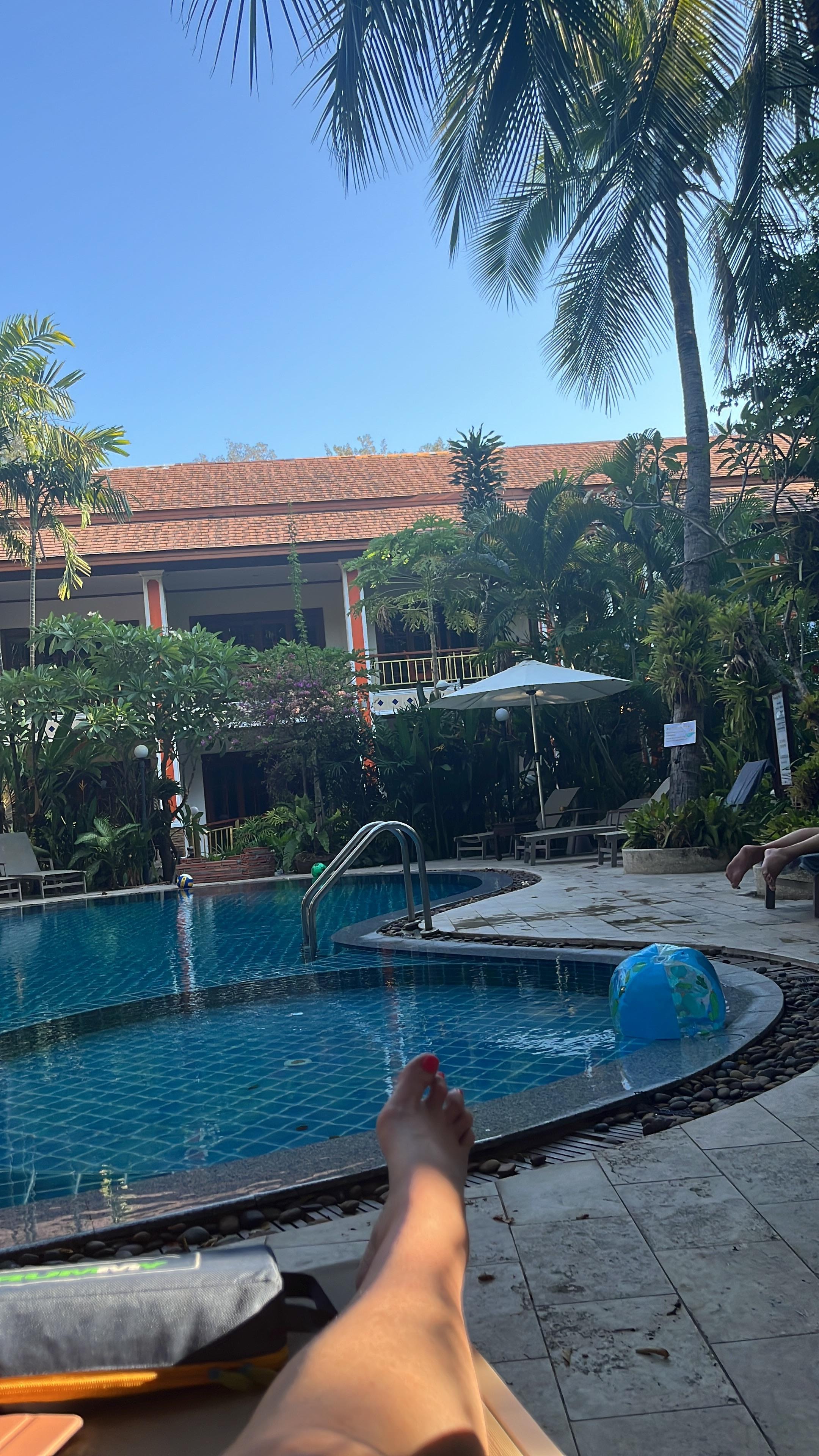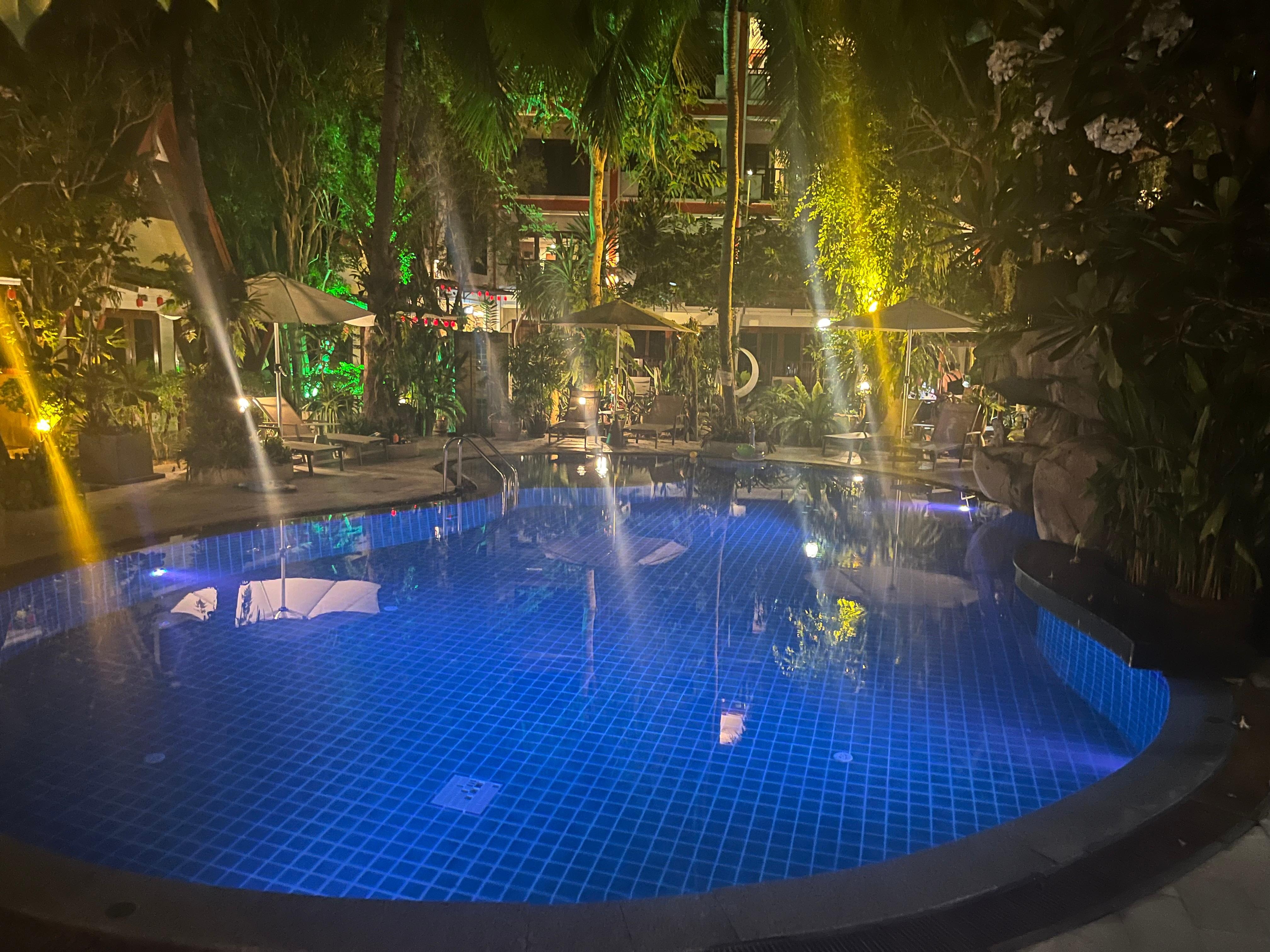 Pro : location fab - lots of restaurants along the strip, favourite Nikita’s. just 10mins in a grab to Naihan beach. Pools are great, if not a little small but people come and go so you can usually get a Lounger. Towels provided in your room . The grounds are beautiful- there’s one maintenance guy that seems to do everything !