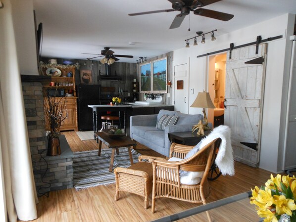 The Fox Den è decorato pensando ai nostri ospiti, comodo, con molta luce naturale. Una cucina completamente attrezzata con un forno full size e frigorifero. Forniamo anche caffè, tè, spezie e oli da cucina.