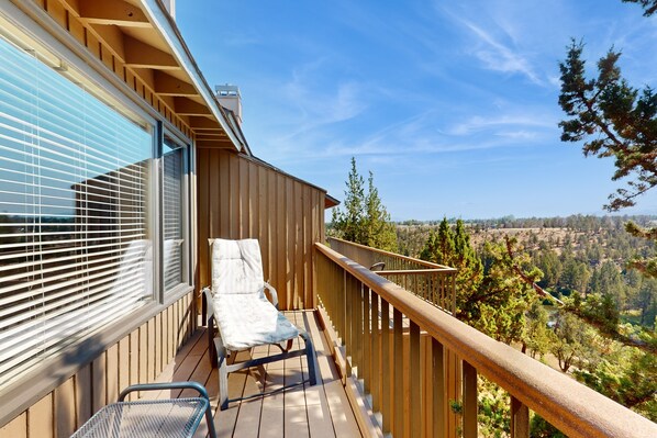 Boasting gorgeous views of the Deschutes River and surrounding mountains, a delightful all-season retreat awaits at Hawks Landing, a 2BR/2BA condo at Eagle Crest Resort. Highlights include a spacious master suite with a private balcony, a gas fireplace in the living area, and alfresco dining on the deck.