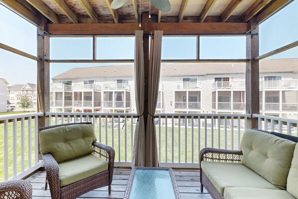 Spend lazy afternoons sipping a favorite beverage on the screened porch. Unwind in the living room after a full day on the beach. Gather in the well-appointed kitchen to prepare meals together. At night, rest well in the comfortable bedrooms, each of which has its own TV.