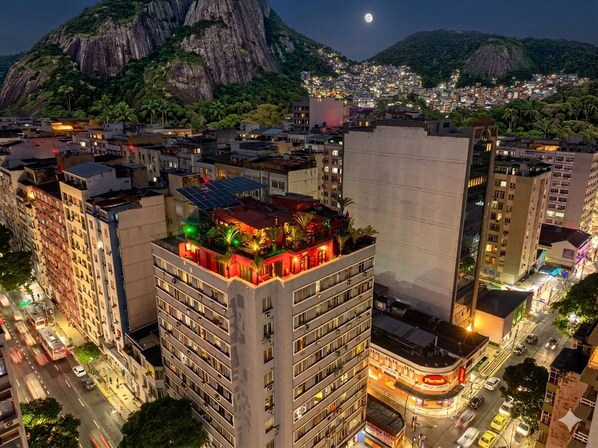 Spettacolare , piena integrazione con l'eleganza dei balconi interni. Localisada perfettamente persona meravigliosa , nel centro sud della città . Vista sui tetti di Copacabana e verdi montagne che conducono alla foresta atlantica fino al mare .