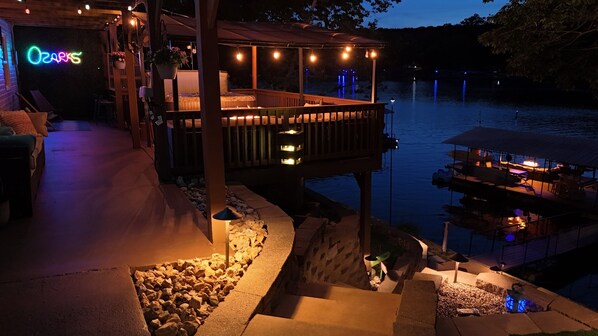 - Extensive lakefront amenities including kayaks, swim mat, dive platform, wet steps, dock seating; and additional seating and hot tub on the multi-level decks. All dock amenities are included in your stay at NO extra charge