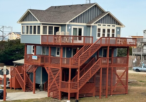Meno di 50 metri dalla spiaggia! Ottima vista sia sull'oceano che sul suono rispetto alla maggior parte delle case Semi e Ocean Front. House si trova su mezzo acro di terra. Spazioso e luminoso. Biancheria fornita e letti fatti.